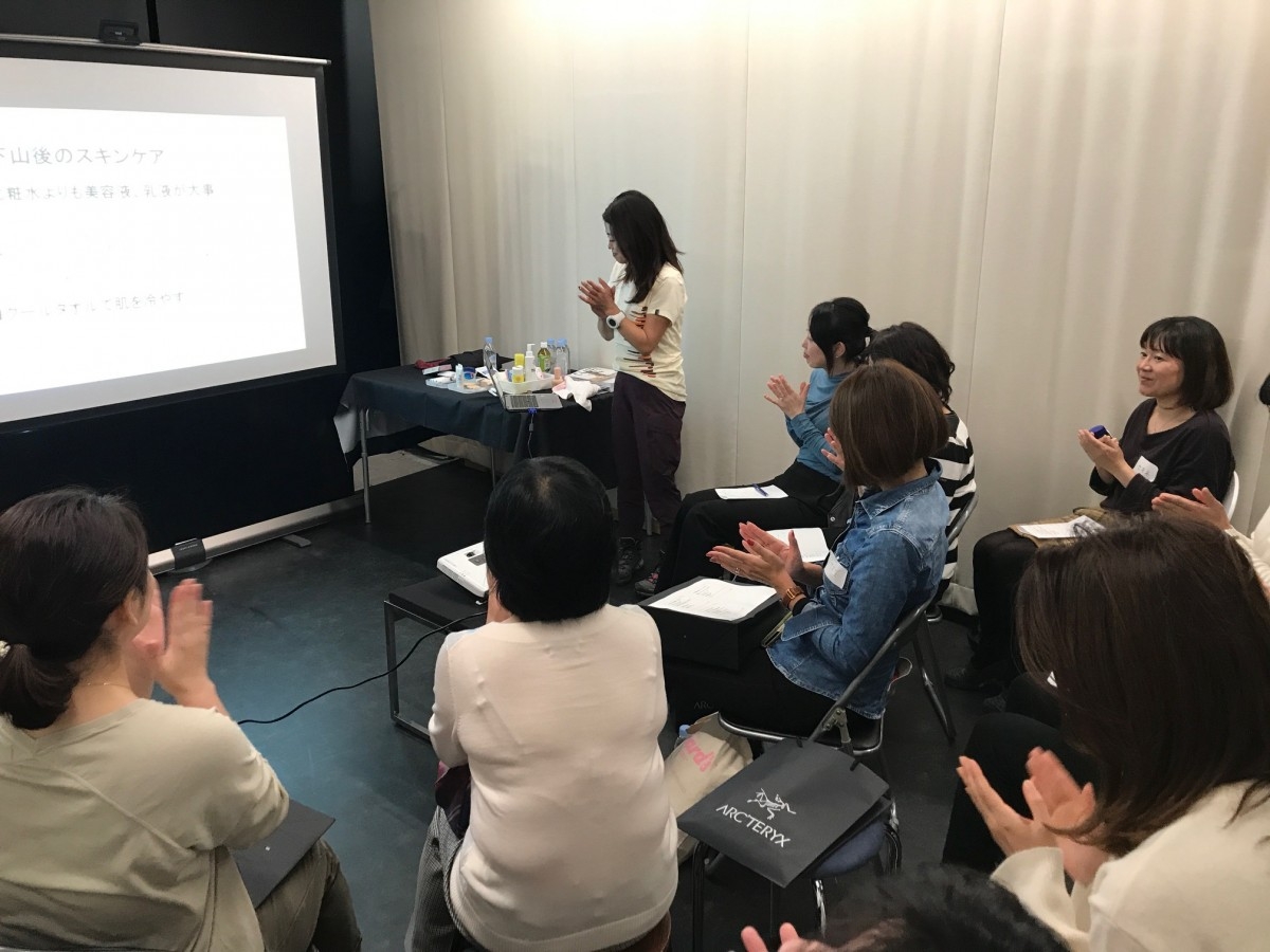 私も大好きなアウトドアブランドの「アークテリクス」主催のイベントにて、ハードなアウトドアスポーツを楽しむ女性の皆様向けにメイクアップの講師としてお招きいただきました。