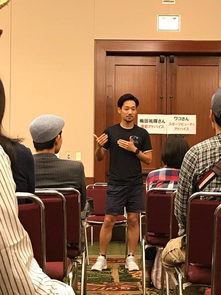 12月7日(木)~9日(土)ゼッケン受け渡し会場のコンベンションセンターにて開催させていただきました。今回は、プロトライスリートの梅田祐輝さんの直前クリニックの後の時間を使わせていただき、ホノルルマラソンだからこそ、重点的に塗っていただきたい箇所の説明と終了後の肌ケアのアドバイスをさせていただきました。