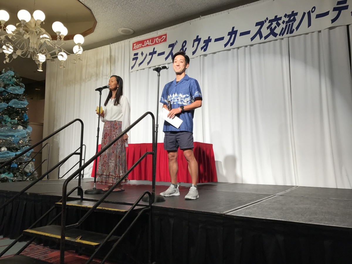 マラソン当日の夜は、パーティで乾杯!お一人さま参加の方でも楽しんでいただけるようなパーティ内容です。私も一参加者として、お客様と歓談させていただきました!